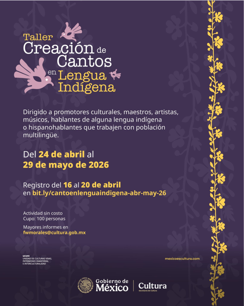 La Secretaría de Cultura del Gobierno de México busca revitalizar la riqueza lingüística del país a través de la música. Se ha anunciado la apertura del Taller de Creación de Cantos en Lengua Indígena, una iniciativa diseñada para dotar de herramientas creativas a quienes mantienen vivas las lenguas maternas desde diversos frentes sociales y artísticos.